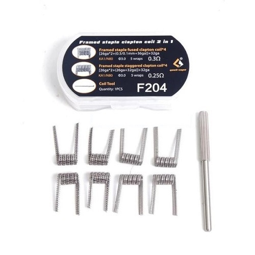 کویل فیوزد کلاپتون گیک ویپ Geekvape Fused Clapton Coil 2 In 1 F201 به صورت ۶ دور و در دو مقاومت ۰.25Ω و ۰.3Ω ارائه شده است.